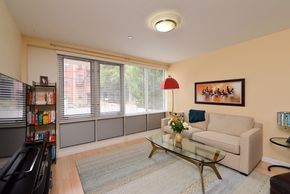 The bright and inviting living room, with its large windows and sleek blinds, providing a natural light due to south exposure, offers the perfect space to relax or entertain. Generous closet space throughout the home ensures all your storage needs are met. This beautiful apartment has a bright sunroom where you can convert the ideal office space.
